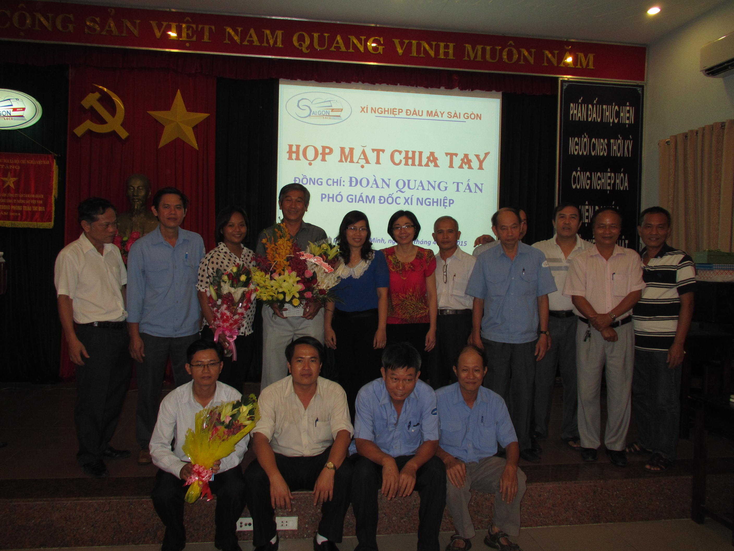 Uống nước nhớ nguồn vốn là những đạo lí tốt đẹp trong truyền thống của dân tộc Việt Nam. Trân trọng quá khứ, trân trọng lớp người đi trước là yếu tố quan trọng để tạo lập những giá trị bền vững cho tương lai. Từ những ý nghĩa sâu xa đó, vừa qua ngày 27/4/2015 Xí nghiệp Đầu máy Sài Gòn đã long trọng tổ chức lễ chia tay và cũng là sự tri ân đối với đồng chí Đoàn Quang Tấn - nguyên Phó giám đốc người đã có nhiều cống hiến cho sự nghiệp phát triển của Xí nghiệp nay được về nghỉ hưu theo chế độ của nhà nước.