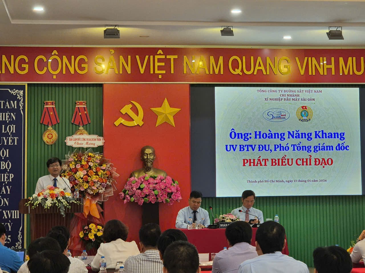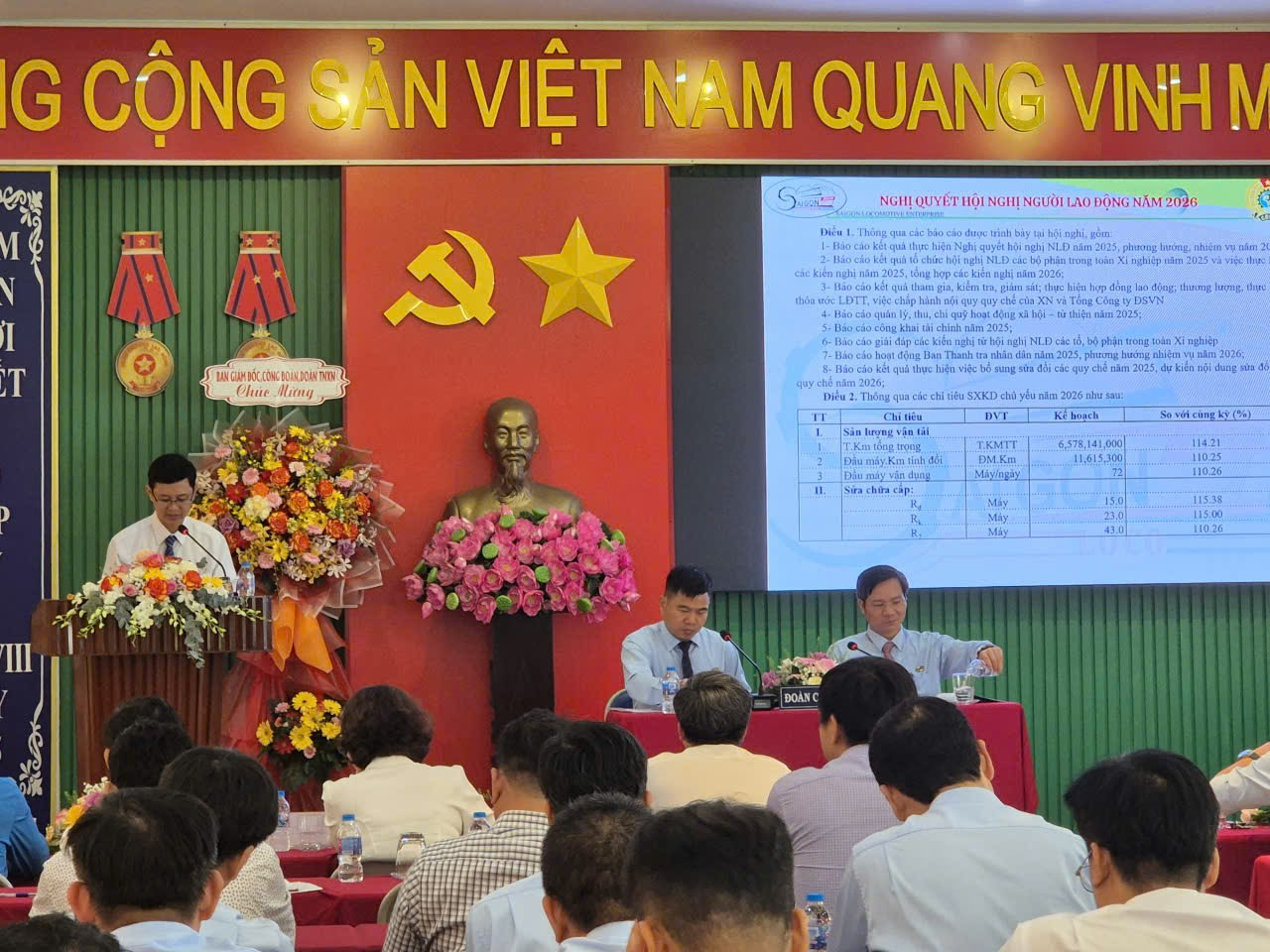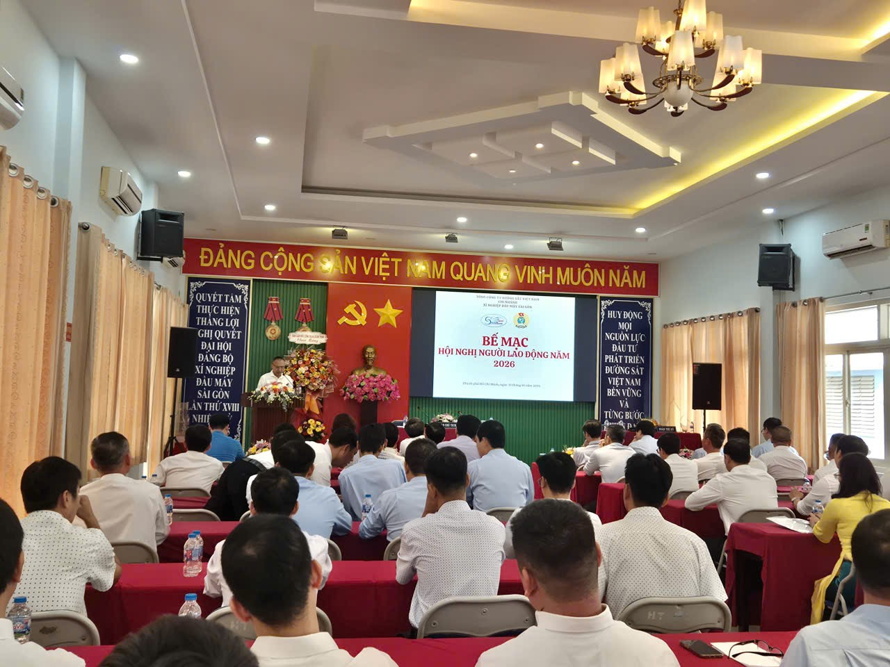 Hôm nay, ngày 13/01/2026 - được sự đồng ý của Tổng Giám đốc và Ban Thường vụ Công đoàn ĐSVN, Xí nghiệp Đầu máy Sài Gòn long trọng tổ chức Hội nghị Đại biểu Người lao động năm 2026 sau một thời gian tiến hành Hội nghị ở các tổ, bộ phận.