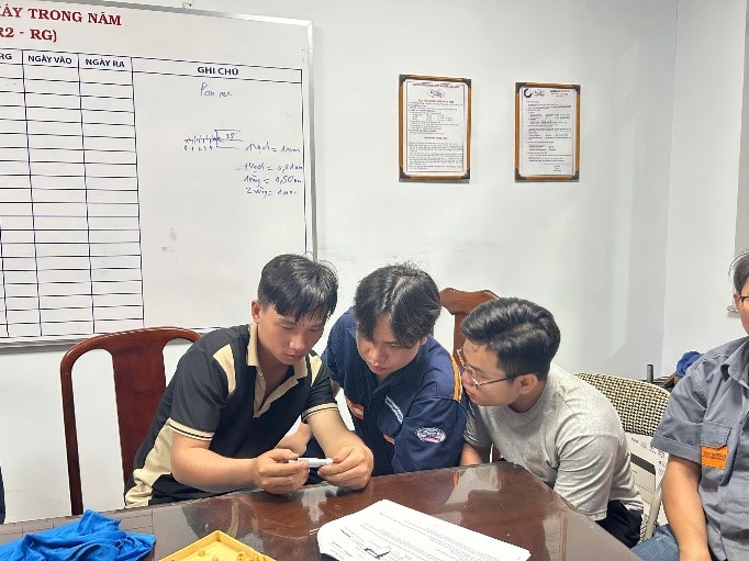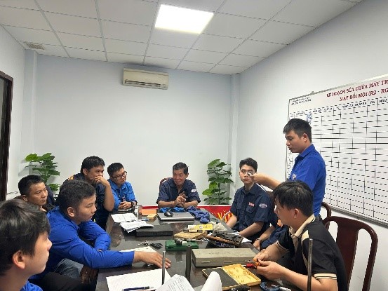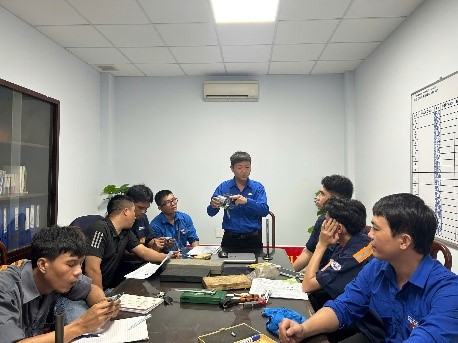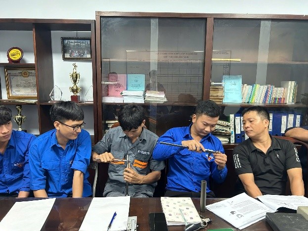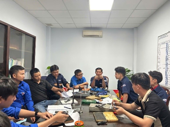 Buổi đào tạo diễn ra sôi nổi, thiết thực, giúp các bạn trẻ nắm vững thao tác, hiểu sâu hơn về kỹ thuật đo kiểm – một kỹ năng quan trọng trong công tác bảo dưỡng, sửa chữa và sản xuất tại Xí nghiệp. Đây không chỉ là hoạt động học tập, mà còn thể hiện rõ tinh thần “Tuổi trẻ làm chủ công nghệ – Vững vàng trong mọi khâu sản xuất”.