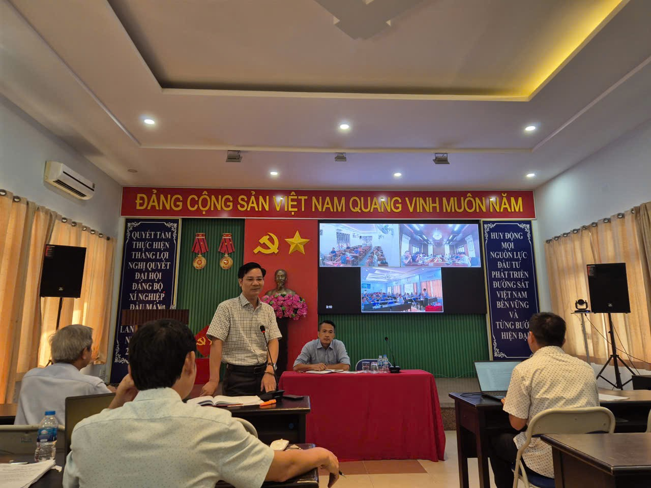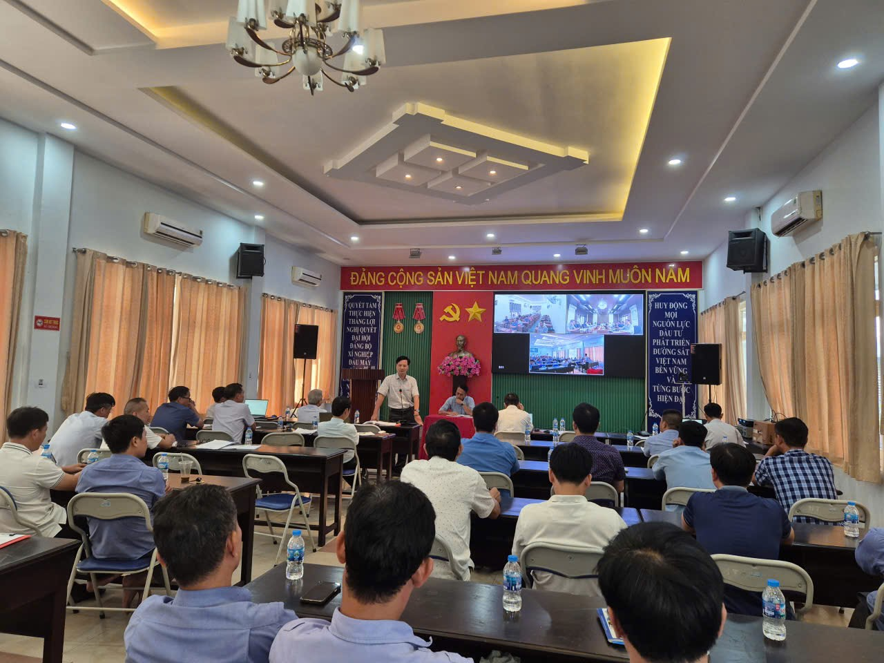 Thực hiện kết luận của Giám đốc Xí nghiệp tại Hội nghị giao ban tháng 09/2025, Hội nghị được tổ chức với hình thức trực tiếp tại Hội trường Xí nghiệp và trực tuyến đến các điểm cầu tại khu vực Đà Nẵng và Nha Trang. Tại đây có sự tham dự của đồng chí Vũ Đức Thắng - UV. BCHĐBTCT, Bí thư ĐU, Giám đốc XN và các đồng chí trong Ban Giám đốc; đồng chí Phạm Thanh Hoàn – CT CĐXN; Đồng chí Hoàng Ngọc Nam - BT. ĐTN cùng 150 CBCNV từ các Phòng ban, Phân xưởng, Trạm ĐM và người lao động tiêu biểu của 3 Phân xưởng Vận dụng Đầu máy. Sự tham gia đông đủ CBCNV đã thể hiện tinh thần đoàn kết, đồng lòng và sự quan tâm sâu sắc của Lãnh đạo Xí nghiệp đối với công tác vận tải và an toàn chạy tàu.